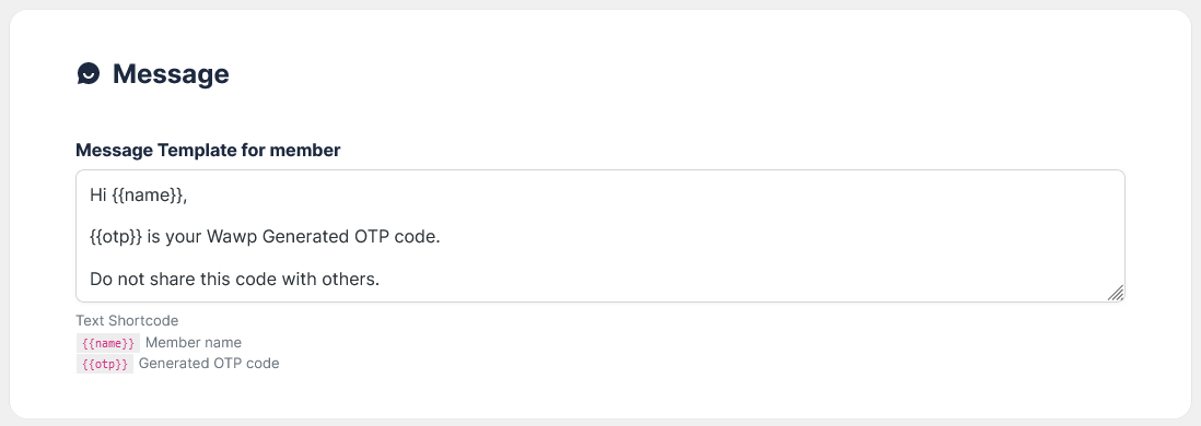 {{otp}} is your Wawp Generated OTP code.