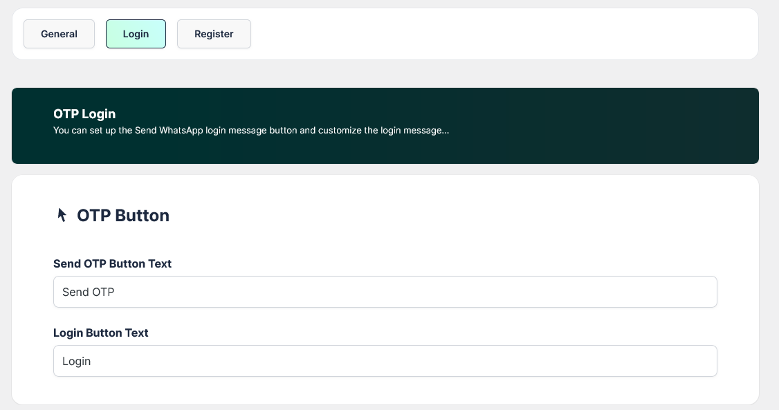OTP Button: You can control the text of the buttons that appear on the login form