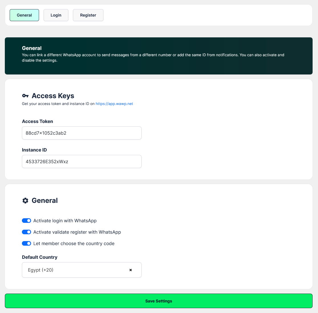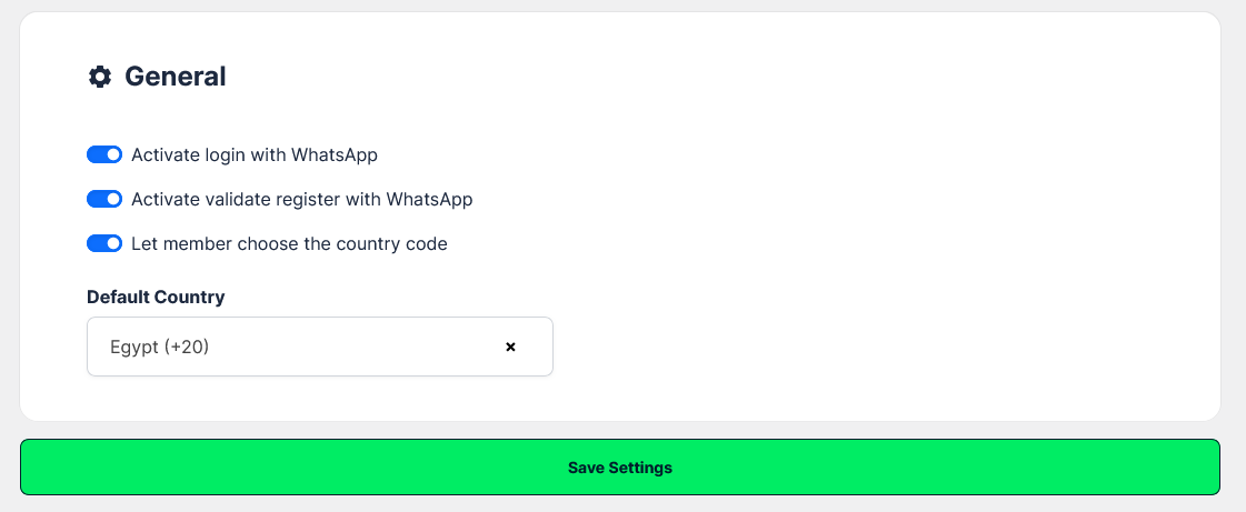 You can activate or disable one or all of the login features and specify the default country for the client during login