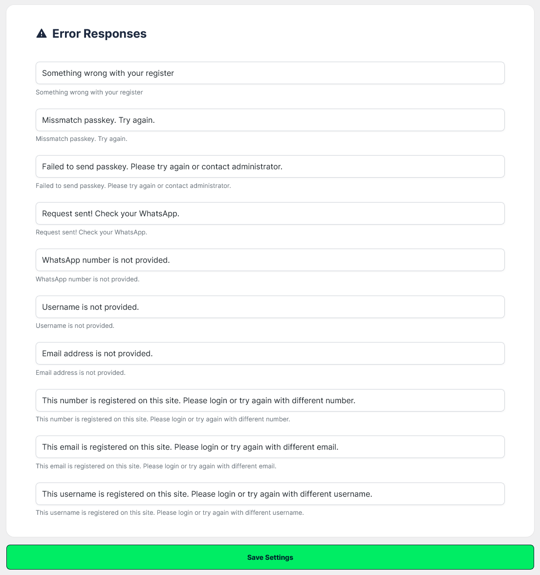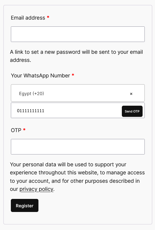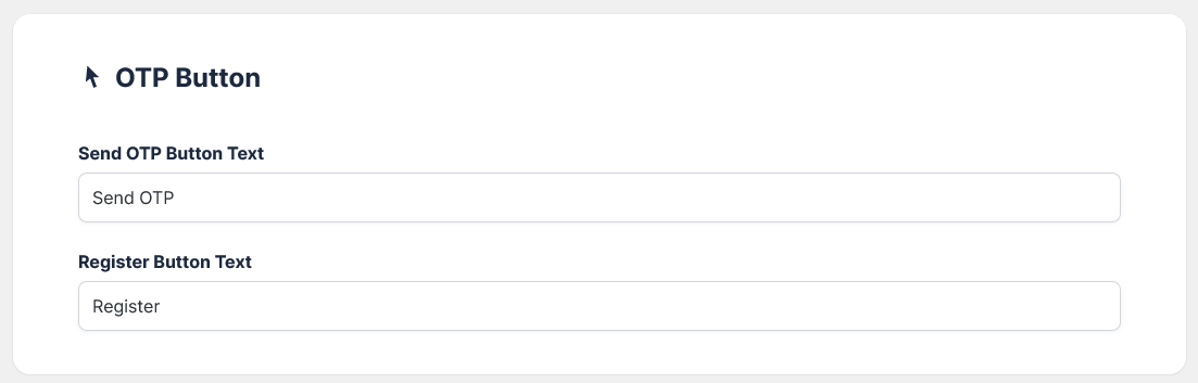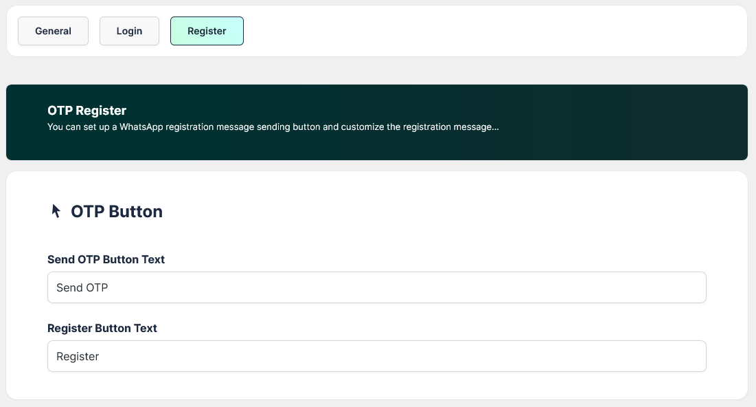 OTP Button: You can control the text of the buttons that appear on the Register form