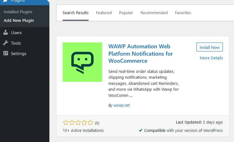 In the search bar, type in “Automation Web Platform For WooCommerce” or “WAWP” and hit enter.